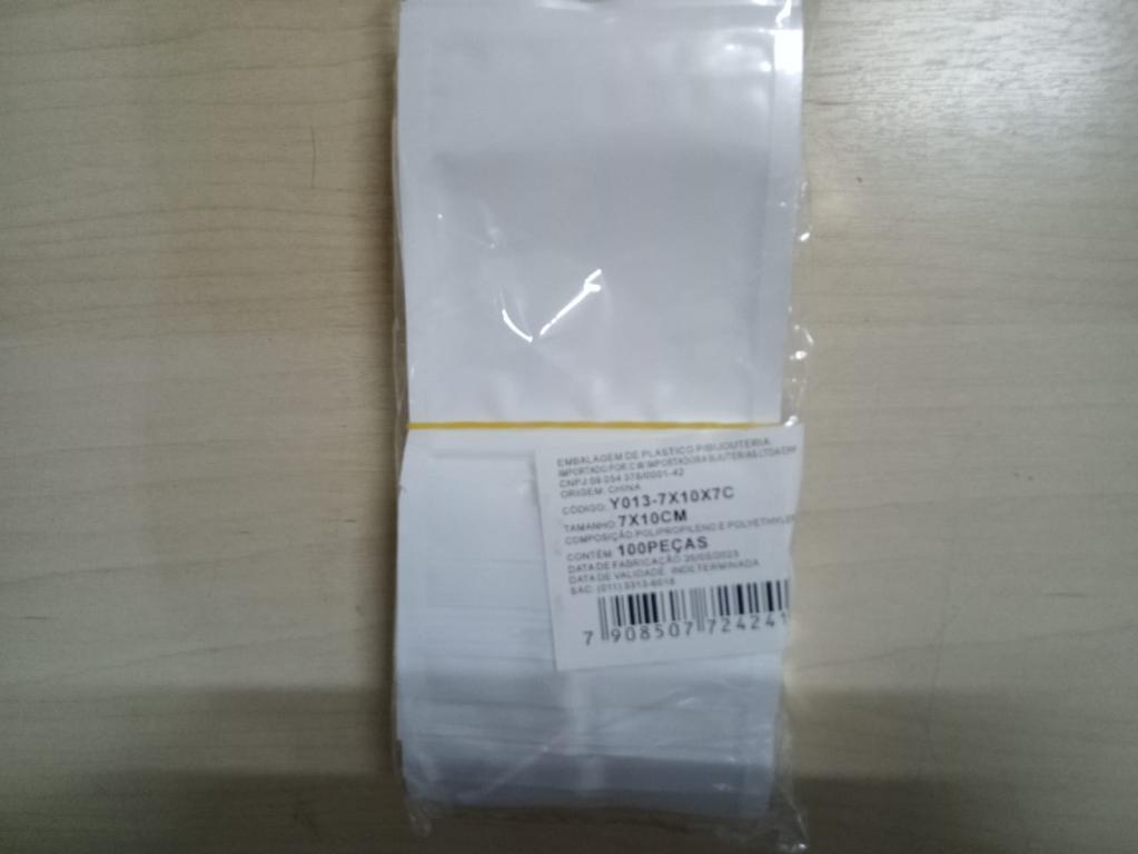 | Nome do Produto | : | Embalagem Plástica c/ Furo Y013-7x10x7C Fundo Branco Frente Incolor c/100 |