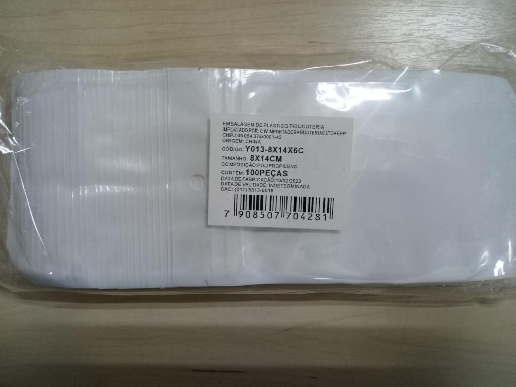| Nome do Produto | : | Embalagem Plástica c/ Furo Y013-8x14x6C Fundo Branco Frente Incolor c/100 |